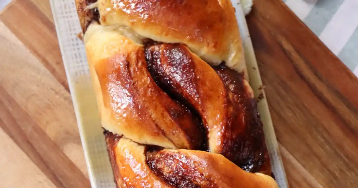 - 🍞Retirar la masa del frigorífico, estirar la masa, untar con dulce de leche con chocolate o Nutella, cortar y dar forma de trenza