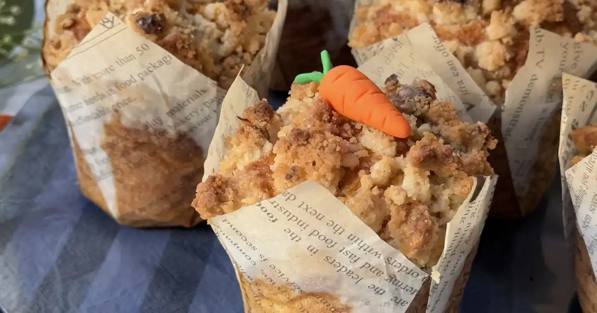 Os comparto una receta deliciosa, esponjosa y muy fácil de preparar; muffins de zanahoria con crumble de nueces.