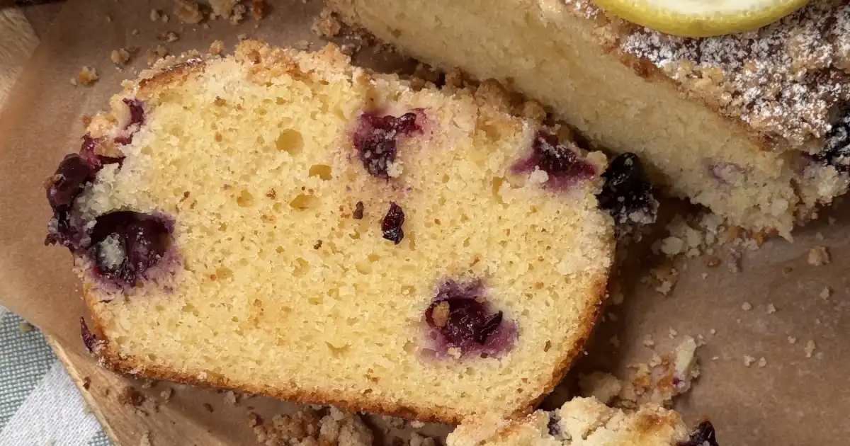 // Bizcocho de limón y arándanos con crumble
