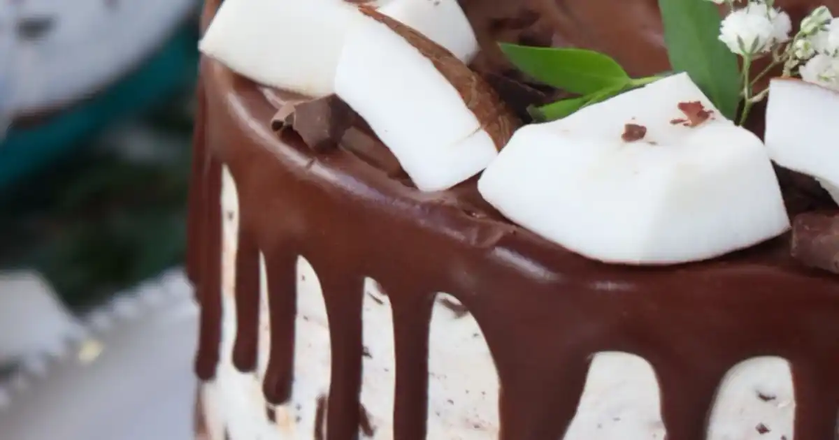- 🎂Three-layer sponge cake with two layers of coconut stracciatella cream and chocolate ganache