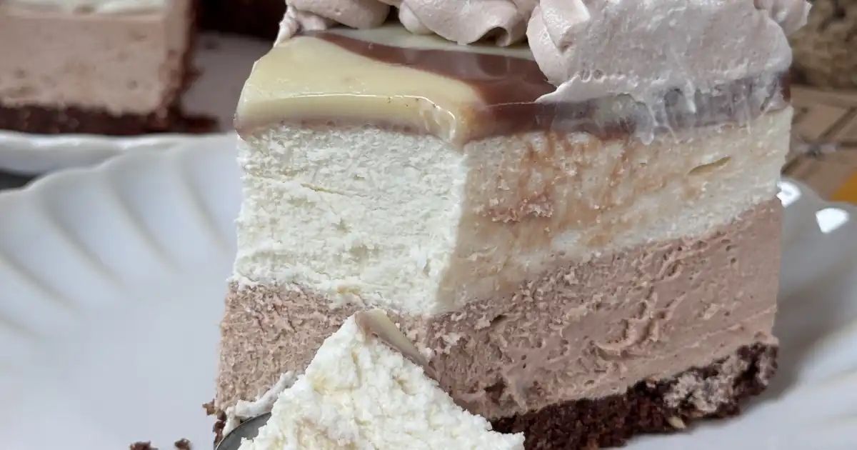 I’m sharing with you the recipe for this creamy and delicious no-bake cake, with a cookie and hazelnut base and a filling of white chocolate, praline chocolate and condensed milk.